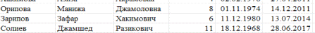 Из этой таблицы выбраны другие данные. Результат