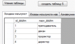 Доступ к данным таблицы