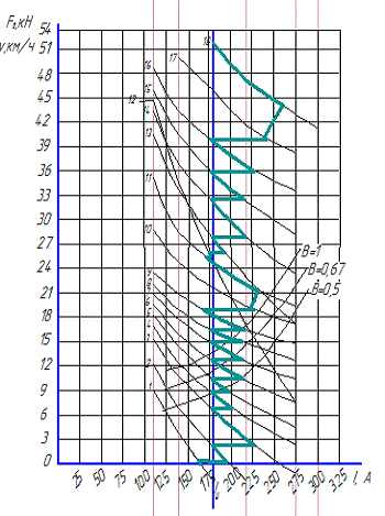 Скорость движения при номинальном режиме……………………. Vн=43,5 км/ч