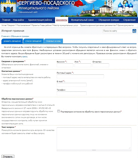 граждан (на примере Администрации Сергиево-Посадского района Московской