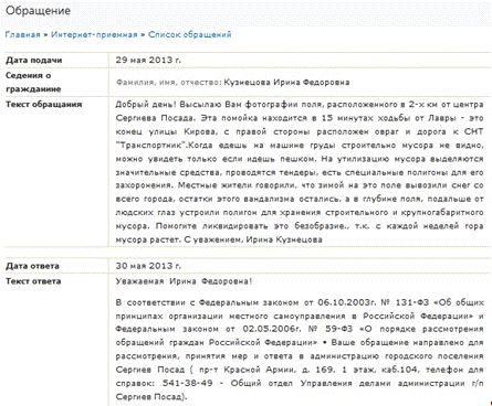 обращения граждан, поступающие через сайт Администрации Сергиево-Посадского