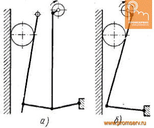 (рис. 1, б) верхний конец ее подвешен к вращающемуся эксцентриковому валу, а