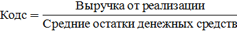 ) коэффициент оборачиваемости денежных средств