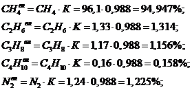 Дійсні об’єми азота, кисню, трьохатомних газів і