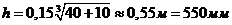- загальна довжина димових боровів;- приведений діаметр борова перерізом 1,5×2 м з півциркульним сводом, який дорівнює: