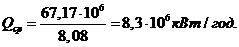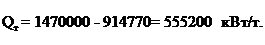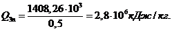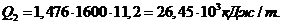 отримання тепла при 185 т сталі (без урахування втрати тепла через под печі);