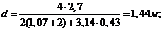 де 1,2 м2 - площа внутрішнього перерізу в гирлі
