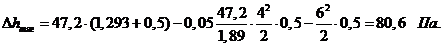 Втрата напору на два повороти під кутом 45гр. в