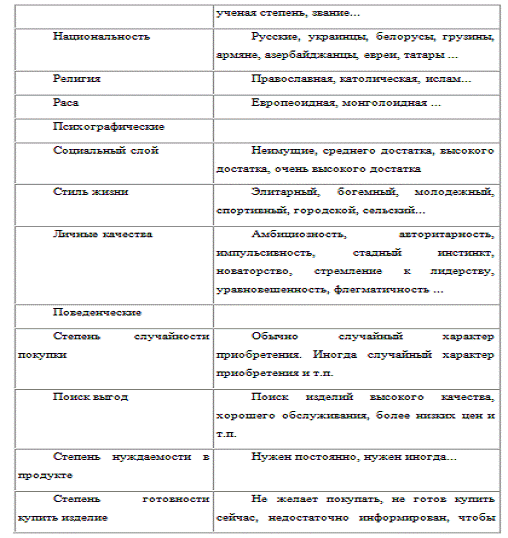 Уделено особое вниманию изучению вопроса того сегментирования рынка по