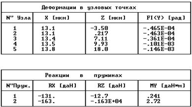 реакции в подшипниках и статическая деформация оси шпинделя.