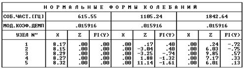 Рисунок 6.11 - Собственные частоты и формы колебаний
