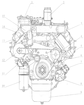 маховика, закреплённым к заднему торцу блока цилиндров через картер агрегатов.