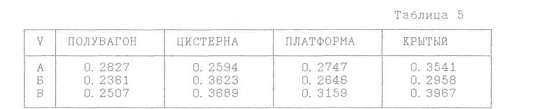 імовірність за родами вагонів складає: криті -0,0646; піввагони - 0,0575;