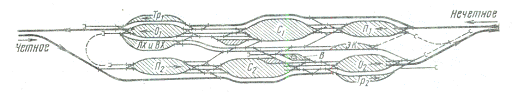 готової продукції складається з 94 к.п. і 4 візки. Довжина здвоєних колій для