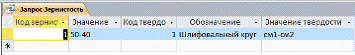 материал,Зернистость,Твердость, а затем и основная таблица(Значения) в режиме