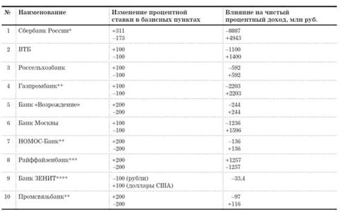 степени влияния изменения процентных ставок на чистый процентный доход. Среди