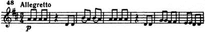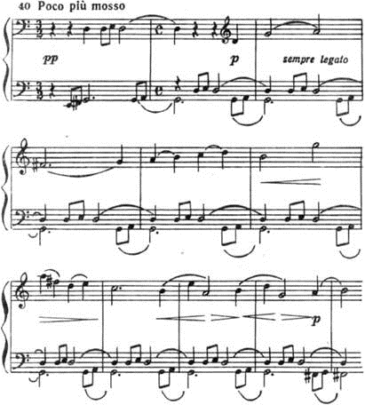 верхнем голосе, а в среднем - противосложение, сохраняющее танцующий характер
