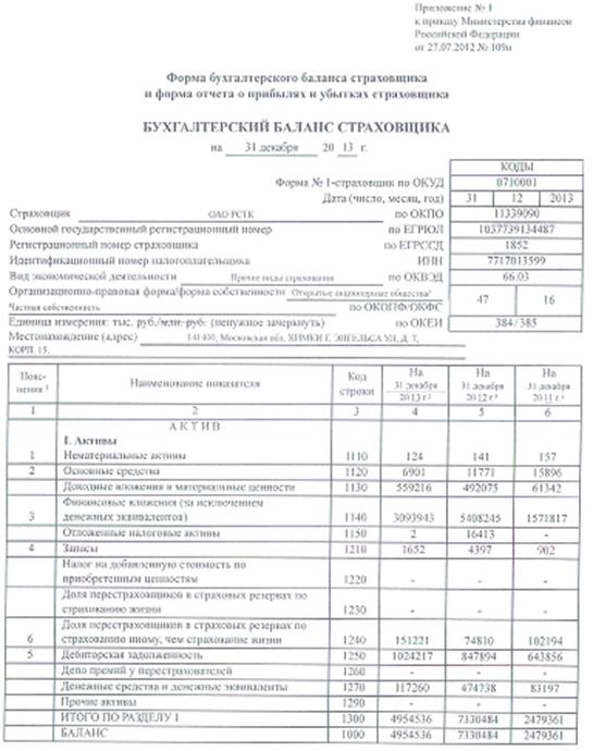 Финансовая устойчивость страховой компании на примере ОАО 'Русская страховая транспортная компания'