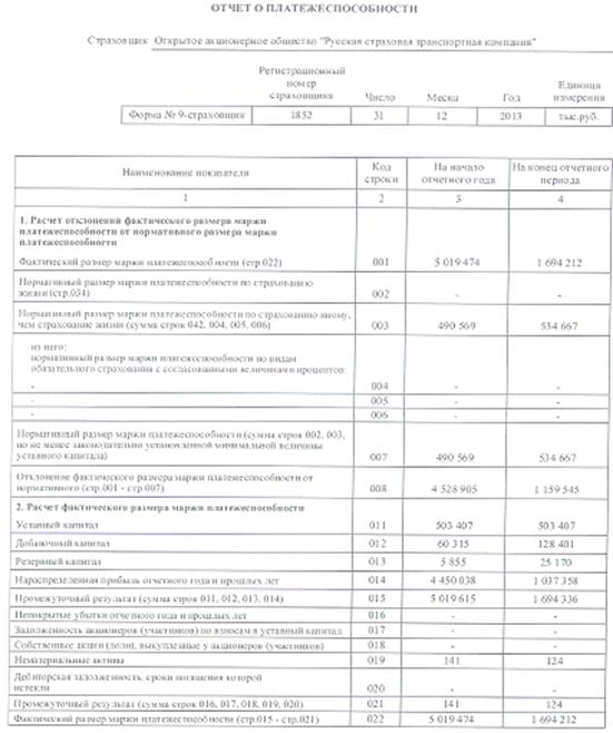 финансовой устойчивости ОАО «Русская страховая транспортная компания»