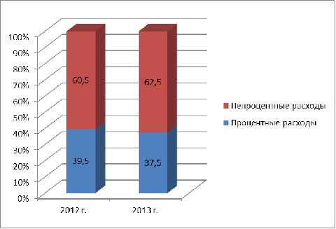 2013 г. - приходится на непроцентные расходы (рис. 2).
