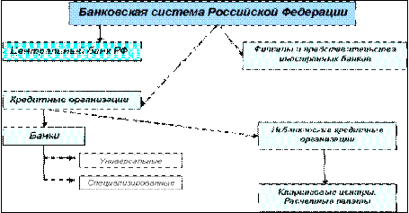 денежно-кредитного механизма. Банковская система включает центральный банк,