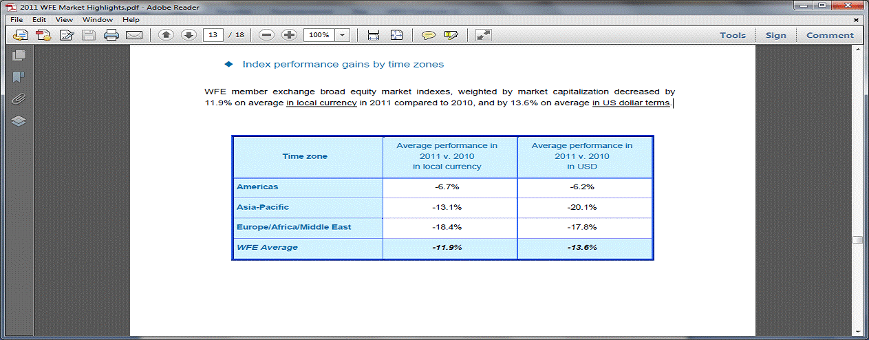 Зміни обміну індексів, зважені капіталізацією ринку в 2011