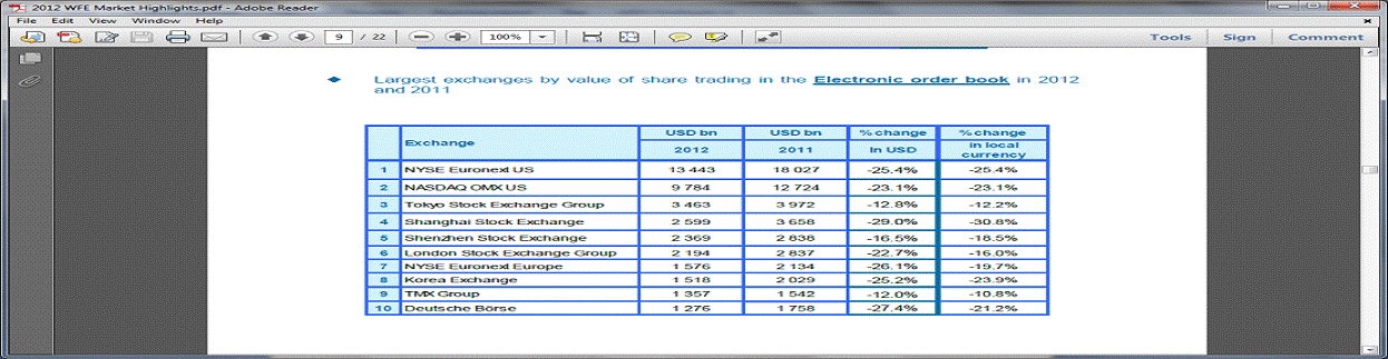 Найбільші торги акцій в 2012 і 2011