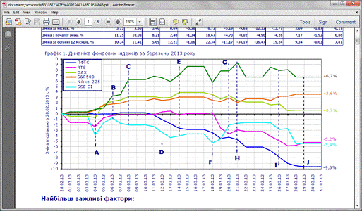 Рис. 4. Динаміка фондових індексів за березень 2013 року