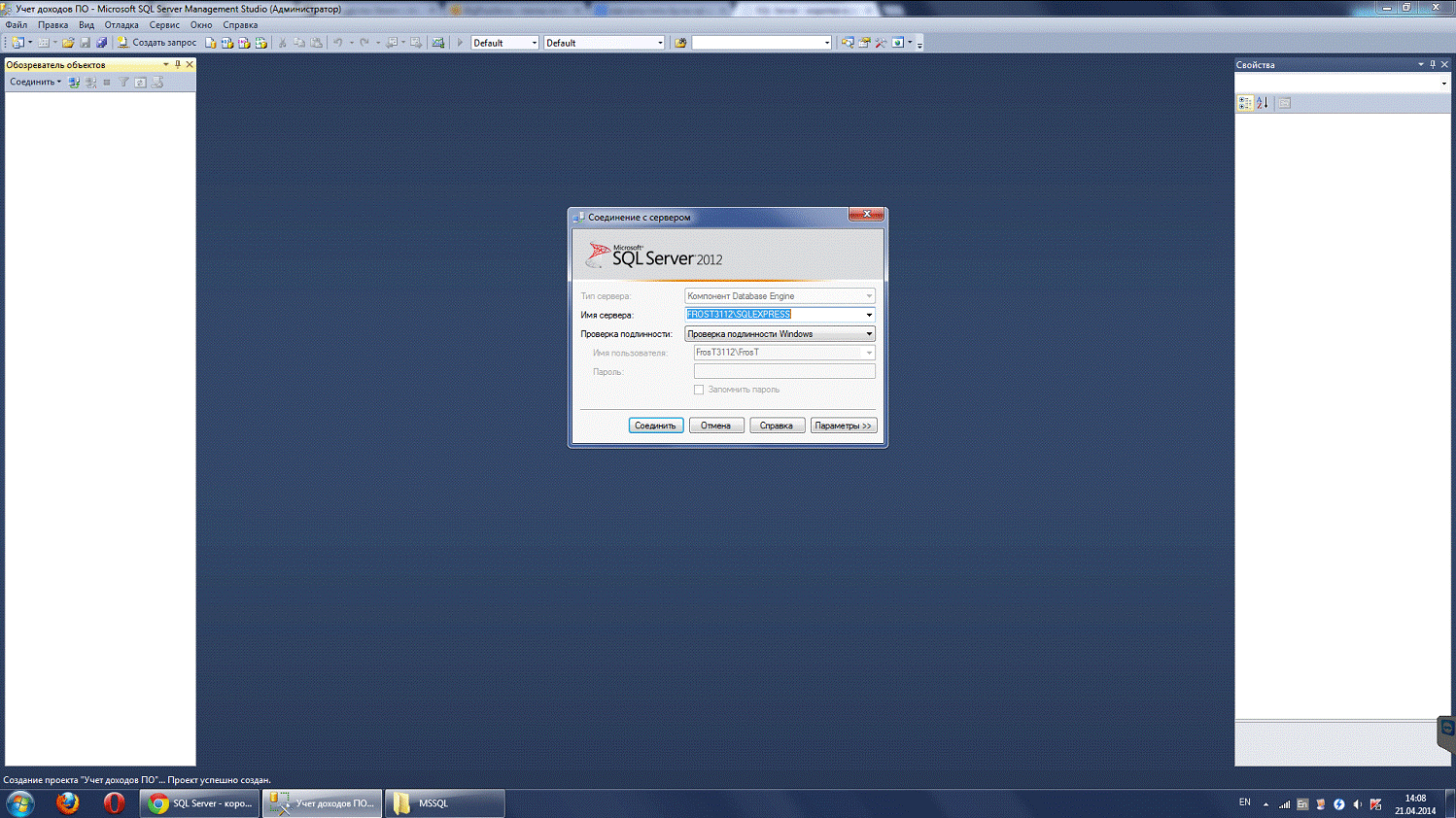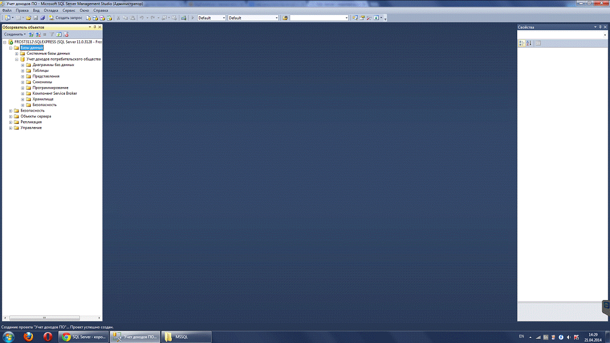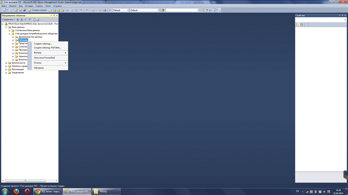модели базы данных, непосредственно средствами SQL Server 2012.