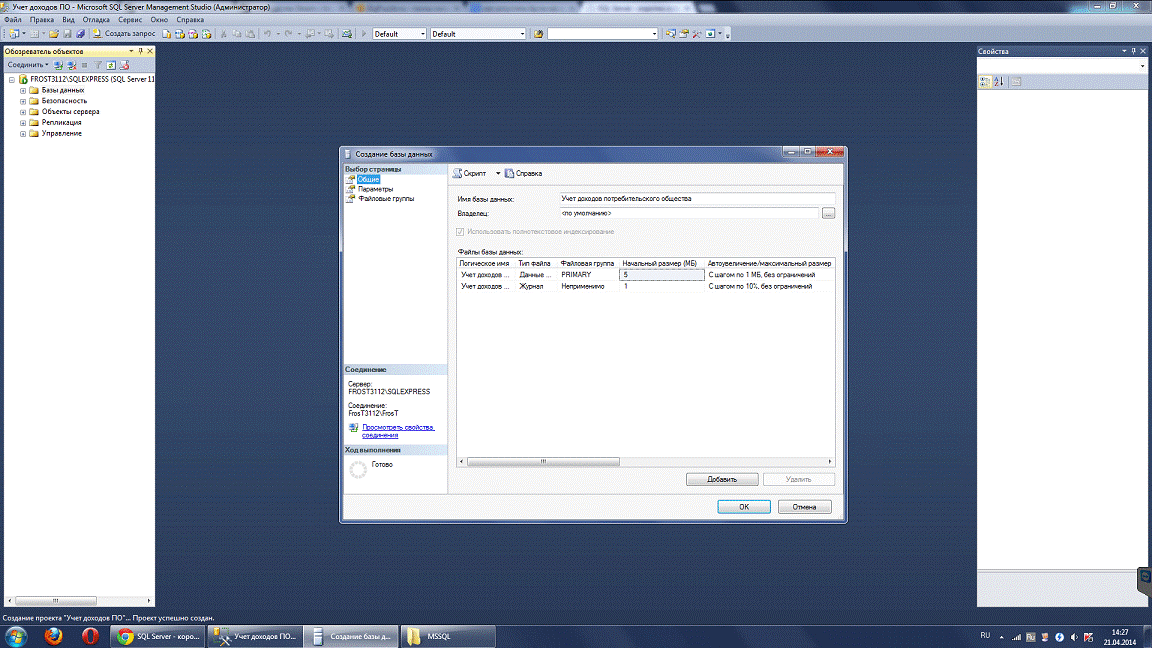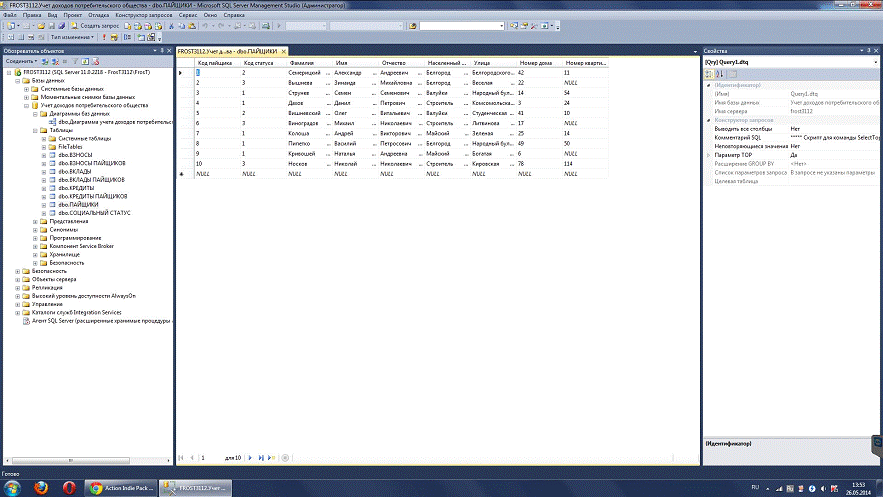 общества с помощью программного продукта MS SQL SERVER, а также создание