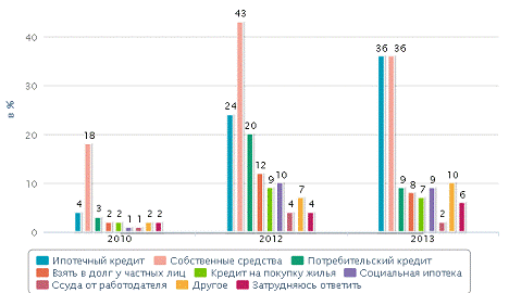 населения приобретают жилье на собственные и заемные деньги и только 0,3% семей