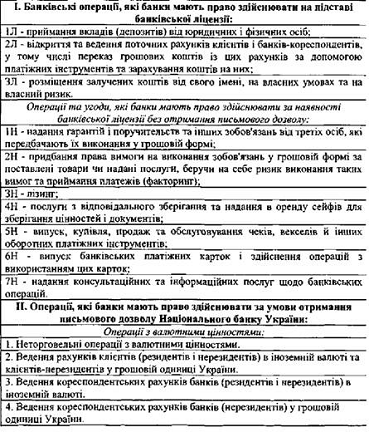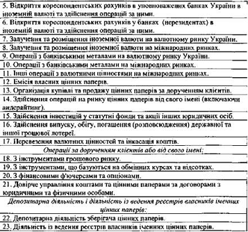 Таблиця. 5. Перелік операцій, на які Національний банк України надає