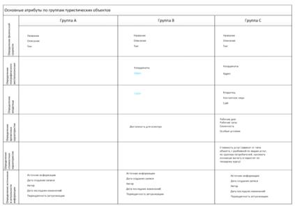 туристического объекта и данными, которые предоставляются. Как видно из