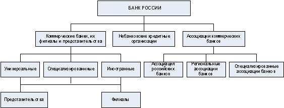 учреждений, организующих кредитные отношения. Представлена центральными и
