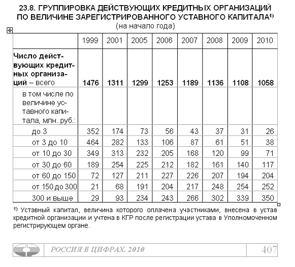 конец года - финансовый кризис, уставной капитал и численность банков.