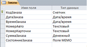 НомерАвто, НомерКарточки, СуммаЗаказа, СостояниеЗаказа).