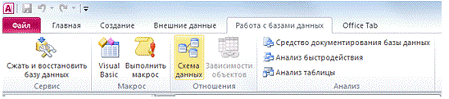 Войти в схему данных: вкладка Работа с базами