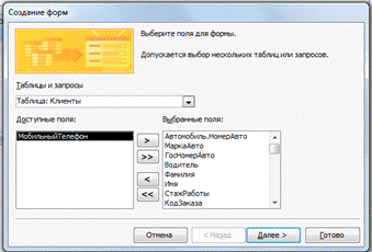 создания базы данных «Диспетчерская служба такси».