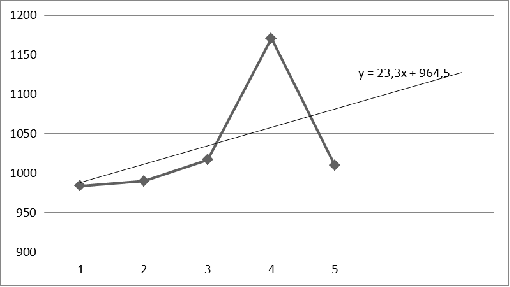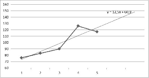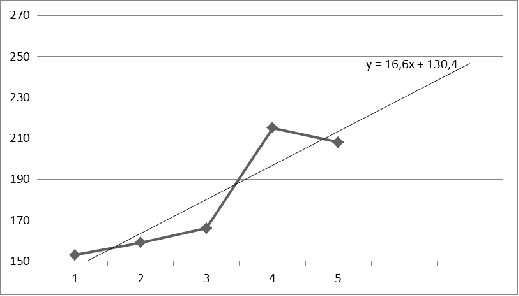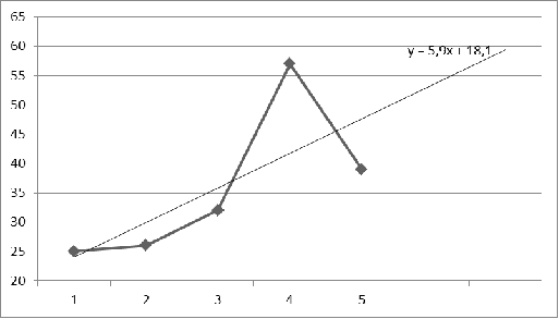 за пять лет (причем нумеруем каждый период от 1 до 5) и находим уравнение линии