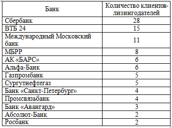 1. Анализ рынка лизинга и его места в банковской деятельности РФ;