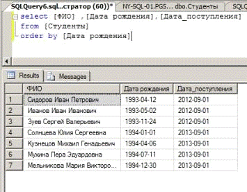 выборка которая сортирует данные по дате рождения учащихся, а так же на рисунке