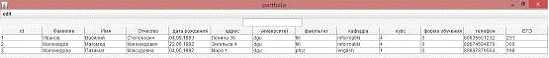 Объектом управления для создания базы данных являлся портфолио студентов.