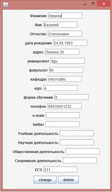 Рисунок 5. Вид интерфейса формы «Изменть/Удалить»