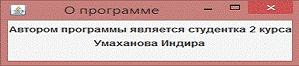 Рисунок 13. Внешний вид окна при нажатии на кнопку «О программе»