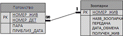 ЖИВОТНЫЕ.НОМЕР_ЖИВ, ЖИВОТНЫЕ.НАИМЕН_ЖИВ, ЖИВОТНЫЕ.ПОЛ_ЖИВ, ПОТОМСТВО.ПАРА,