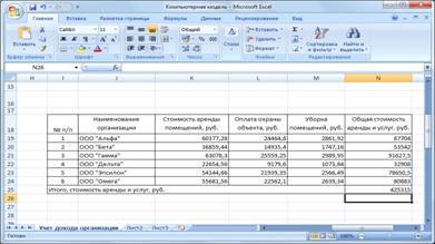 Рис. 8. Итоговый вид расчетной таблицы доходов