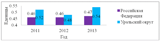 сократился на 0,04 единицы, что составляет 7,6%, но к 2013 году коэффициент
