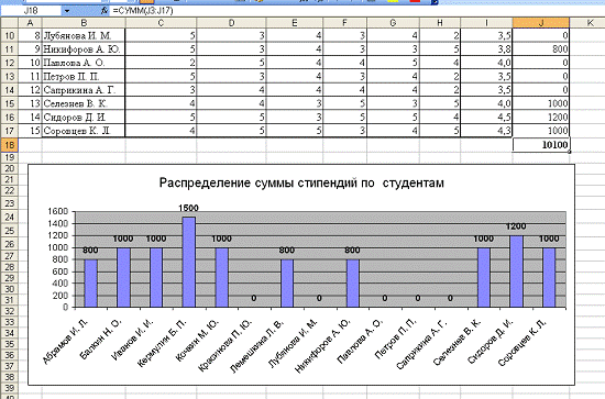 назначается. Построить диаграмму распределения суммы стипендий по студентам.