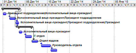 Внедрение происходит в 5 этапов, созданных в MS Project и представленных в виде диаграммы Ганта (Рисунок 30)