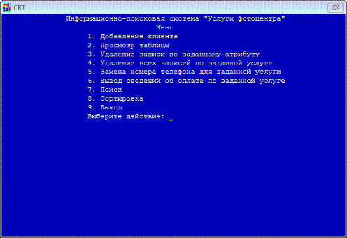2 Разработка информационно-поисковой системы «Услуги фотоцентра» на языке